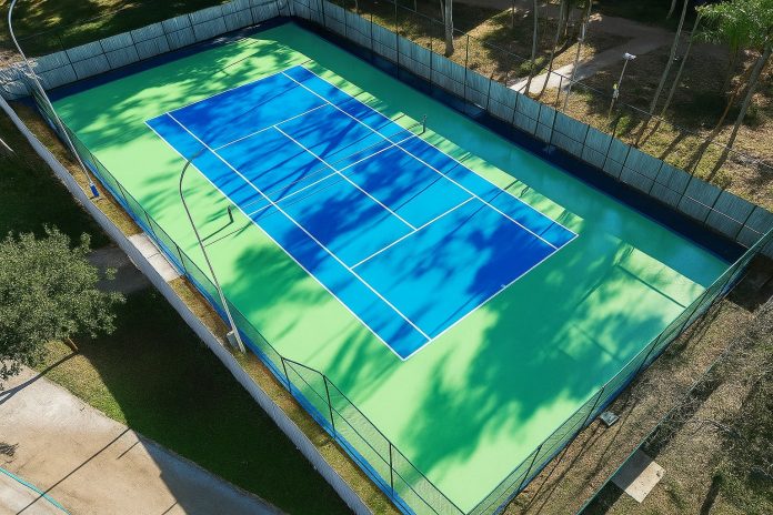 O serviço inclui a reconstrução de calçadas, reforço estrutural de alambrados e portões de acesso, instalação de placas de sinalização, recuperação do piso em concreto — com demolição, lixamento, pintura e correção de fissuras —, além da substituição e pintura de traves de futebol, tabelas de basquete e redes. A iluminação também foi reforçada ou substituída quando necessário.